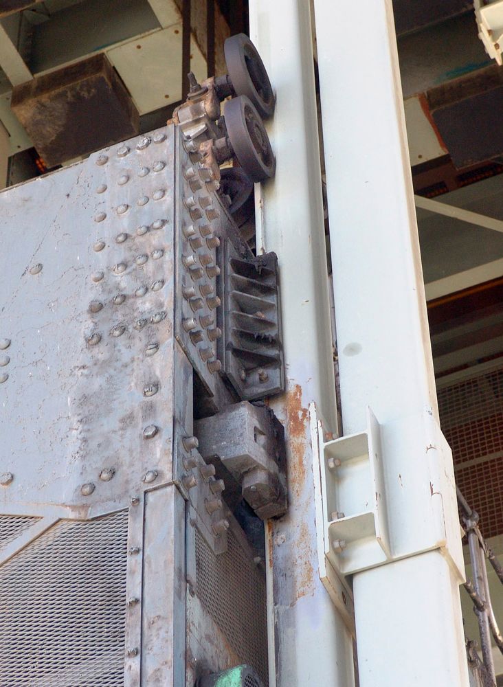 When loading or unloading of the cage is completed, the station air supply is removed, resulting in a rapid loss of air pressure in the power pack. This starts the decompression cycle, which takes about ten seconds. As the oil pressure drops, the clamps release their grip at a controlled rate and the cage slides smoothly to its new position in the shaft. The clamp arms will then fully retract, thus allowing the cage to be moved.